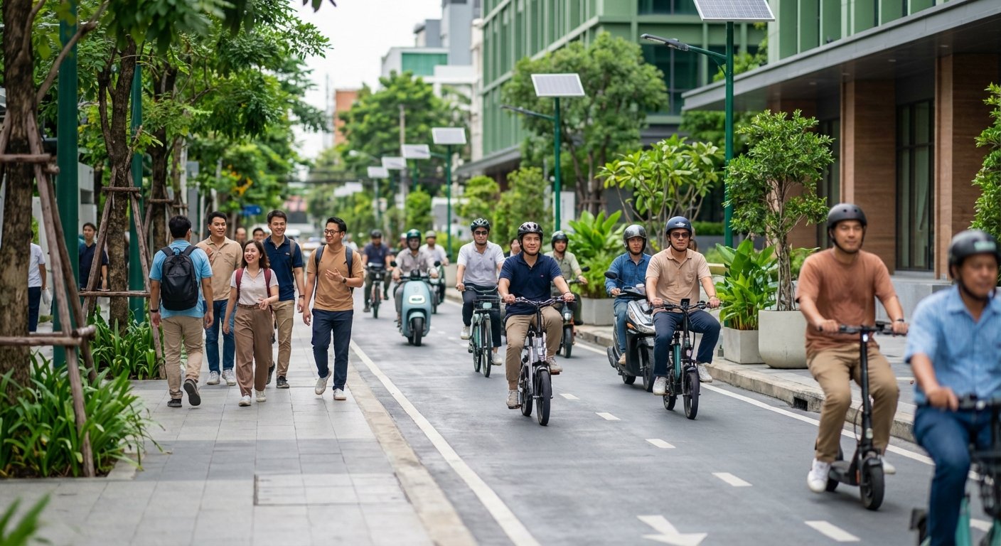 การเดินทางในแต่ละวันของประชากรในเมืองรวมกันสร้างผลกระทบต่อสิ่งแวดล้อมมหาศาล การเลือกใช้ E-Bike แทนรถจักรยานยนต์หรือรถยนต์สำหรับการเดินทางระยะใกล้ สามารถลดการปล่อยคาร์บอนไดออกไซด์ได้อย่างมีนัยสำคัญ เมื่อพิจารณาในภาพรวมระดับประเทศ การเปลี่ยนแปลงพฤติกรรมการเดินทางของคนจำนวนมากจะช่วยให้ประเทศไทยเข้าใกล้เป้าหมาย Net Zero ได้เร็วขึ้น การสนับสนุนจากภาครัฐผ่านนโยบายต่างๆ รวมถึงการสร้างโครงสร้างพื้นฐานที่เอื้ออำนวย จะเป็นตัวเร่งสำคัญที่ทำให้การเดินทางอย่างยั่งยืนกลายเป็นวิถีชีวิตของคนไทย