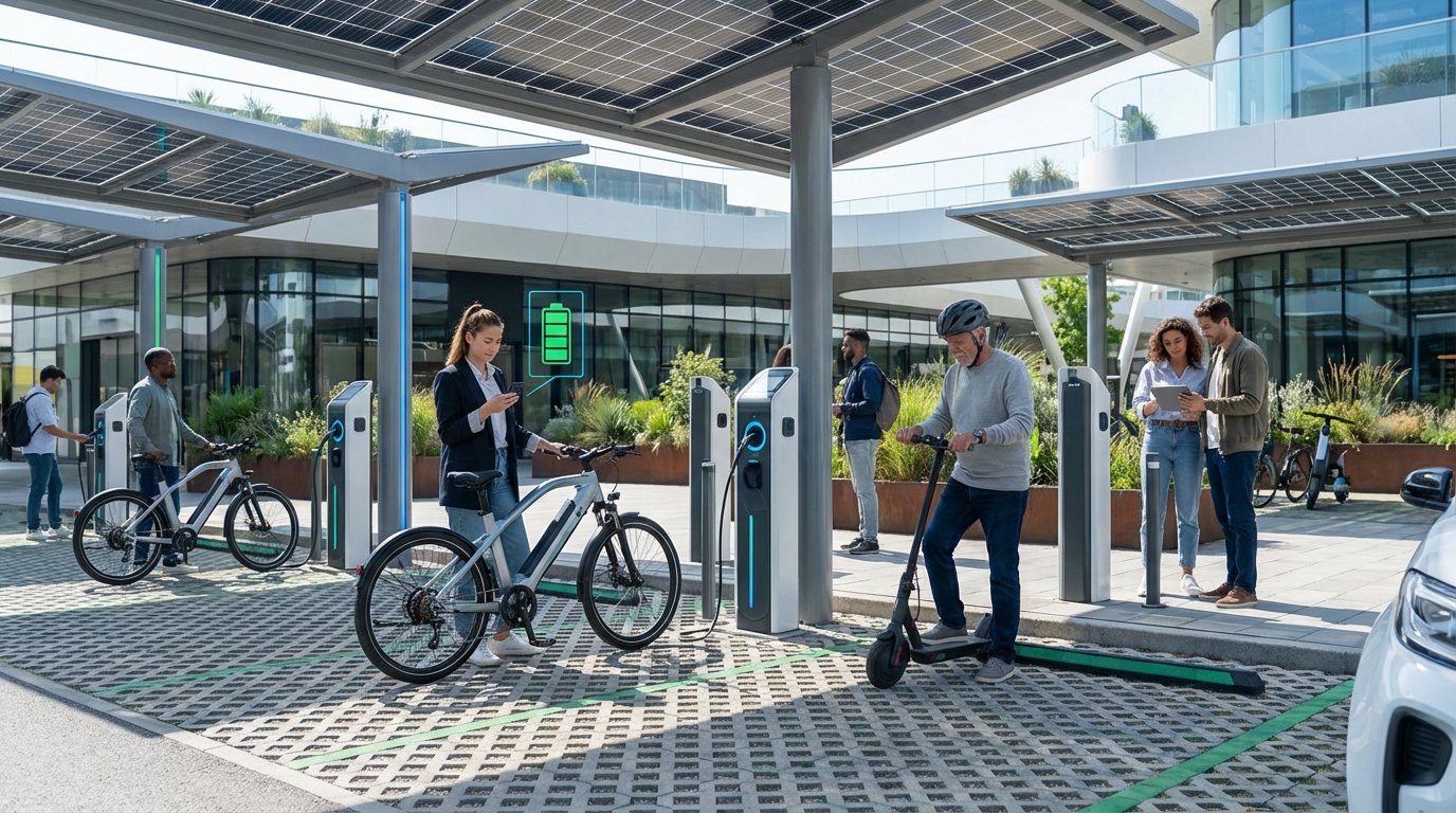 - การเชื่อมต่อ IoT เต็มรูปแบบ: จักรยานไฟฟ้า (E-Bike) และสกู๊ตเตอร์ไฟฟ้า (Electric Scooter) จะมาพร้อมระบบ IoT ที่เชื่อมต่อกับสมาร์ทโฟนเป็นมาตรฐาน ทำให้ผู้ใช้สามารถตรวจสอบสถานะแบตเตอรี่ (Battery), ติดตามตำแหน่ง, และบันทึกข้อมูลการเดินทางได้แบบเรียลไทม์
