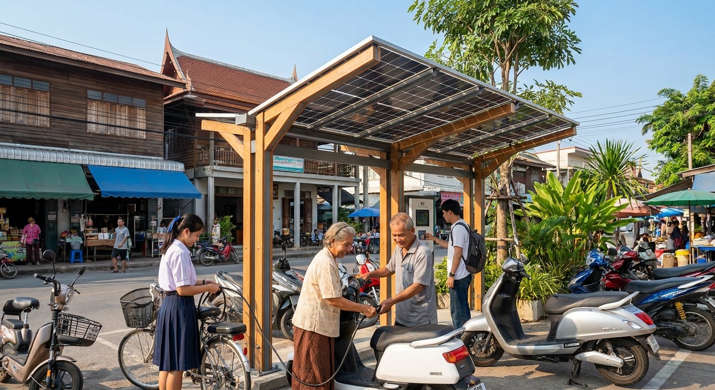 เทรนด์ EV 2026: สถานีชาร์จพลังงานแสงอาทิตย์หนุน E-Bike