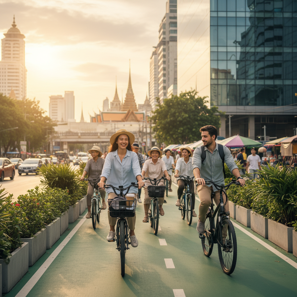 - ย่านศูนย์กลางธุรกิจ (CBD): ถนนสายสำคัญอย่างสีลม สาทร เพลินจิต และสุขุมวิท ซึ่งเป็นพื้นที่ที่มีการเดินทางหนาแน่นตลอดทั้งวัน การมีเลนจักรยานที่ปลอดภัยจะช่วยให้พนักงานออฟฟิศและผู้ที่อาศัยในบริเวณนี้มีทางเลือกในการเดินทางระยะสั้นๆ ที่สะดวกขึ้น
