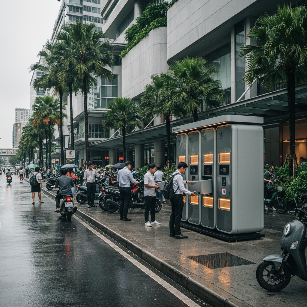 โมเดลสถานีสลับแบตเตอรี่ (Battery Swapping Station) คือแนวคิดที่เปลี่ยนจากการ “ชาร์จ” แบตเตอรี่เดิมในตัวรถ เป็นการ “สลับ” แบตเตอรี่ที่หมดแล้วกับแบตเตอรี่ที่ชาร์จเต็มแล้วจากสถานีบริการ ทำให้กระบวนการทั้งหมดใช้เวลาเพียงไม่กี่นาที ซึ่งเทียบเท่ากับการเติมน้ำมันในรถยนต์สันดาป ความสำคัญของเทคโนโลยีนี้ทวีคูณขึ้นในบริบทของเมืองใหญ่ที่ทุกนาทีมีค่า สำหรับผู้ที่ต้องเดินทางทุกวัน เช่น พนักงานออฟฟิศที่ต้องเดินทางระหว่างบ้านและที่ทำงาน หรือนักศึกษาที่ต้องเดินทางระหว่างคณะต่างๆ การลดเวลาชาร์จจาก 4-8 ชั่วโมง ให้เหลือเพียง 2-3 นาที คือการปลดล็อกศักยภาพของยานยนต์ไฟฟ้าสองล้ออย่างเต็มที่ ทำให้การเดินทางเป็นไปอย่างราบรื่น ไม่สะดุด และสามารถวางแผนได้แม่นยำยิ่งขึ้น
