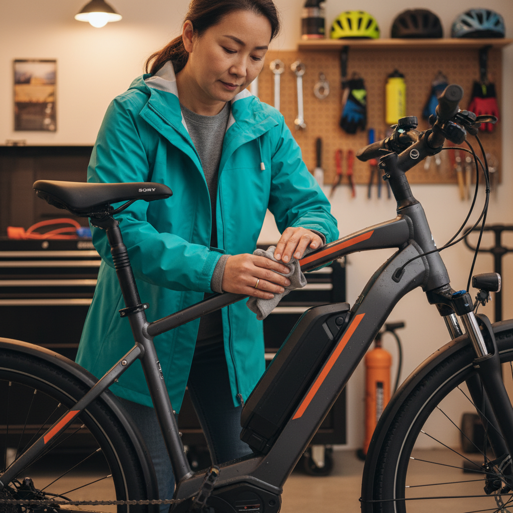 - หลังขับลุยฝน: ใช้ผ้าแห้งและสะอาดเช็ดทำความสะอาดตัวจักรยานและแบตเตอรี่ทันทีหลังใช้งาน