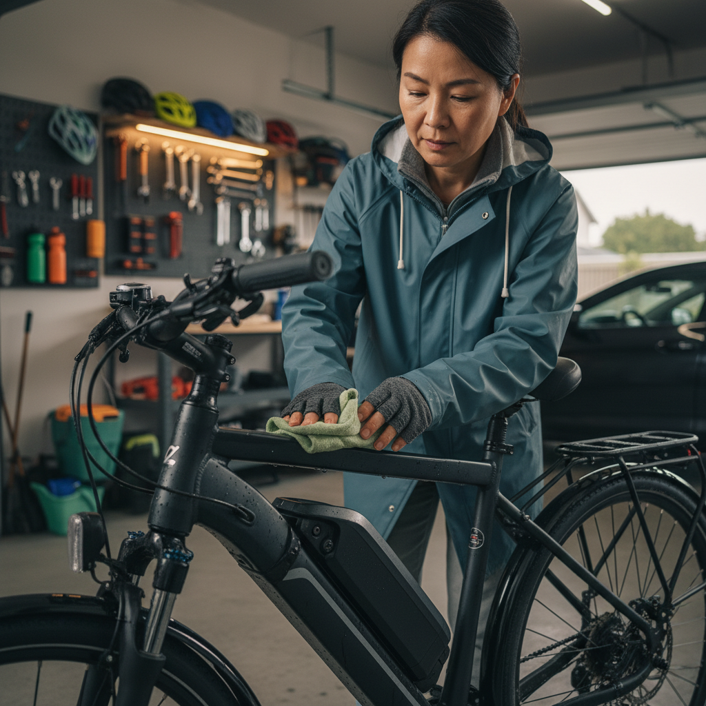 หลังจากขับขี่ท่ามกลางสายฝน สิ่งแรกที่ควรทำคือใช้ผ้าแห้งเช็ดทำความสะอาดตัวรถและแบตเตอรี่ทันที โดยเน้นบริเวณขั้วต่อและจุดเชื่อมต่อไฟฟ้าต่างๆ เพื่อกำจัดความชื้นที่อาจก่อให้เกิดสนิมหรือการกัดกร่อน จากนั้นควรนำ E-Bike ไปจัดเก็บในพื้นที่ร่ม แห้ง และมีอากาศถ่ายเทสะดวก หลีกเลี่ยงการจอดตากแดดหรือตากฝนโดยตรง