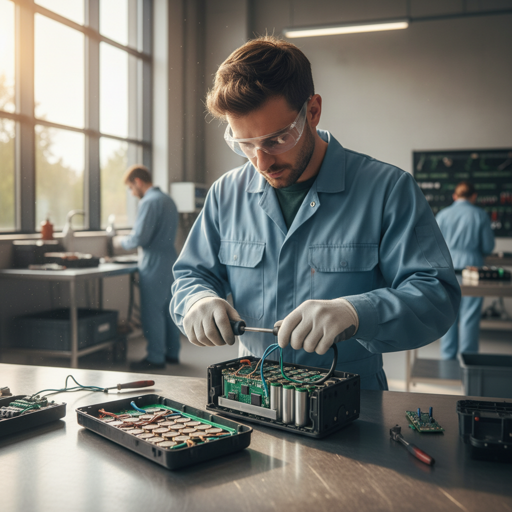 เมื่อแบตเตอรี่หมดอายุการใช้งานในชีวิตที่สอง หรือไม่สามารถนำไปใช้ประโยชน์ต่อได้แล้ว ขั้นตอนสุดท้ายคือการรีไซเคิล ซึ่งเป็นกระบวนการทางอุตสาหกรรมที่ซับซ้อนในการแยกสลายเซลล์แบตเตอรี่เพื่อสกัดเอาวัตถุดิบที่มีค่ากลับคืนมา กระบวนการนี้โดยทั่วไปประกอบด้วยการทำให้แบตเตอรี่ปลอดภัย (Discharging), การถอดแยกชิ้นส่วน, และการสกัดทางเคมีหรือความร้อนเพื่อแยกโลหะต่างๆ เช่น ลิเธียม, โคบอลต์, นิกเกิล, และแมงกานีส ออกจากกัน