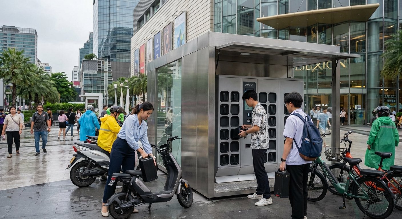 - การแก้ปัญหาการรอชาร์จ: สถานีสลับแบตเตอรี่ (Battery Swapping Station) ช่วยให้ผู้ใช้ E-Bike และสกู๊ตเตอร์ไฟฟ้าสามารถเปลี่ยนแบตเตอรี่ที่หมดแล้วเป็นแบตเตอรี่ที่ชาร์จเต็มได้ในเวลาไม่กี่นาที ทำให้การเดินทางต่อเนื่องและไร้กังวล