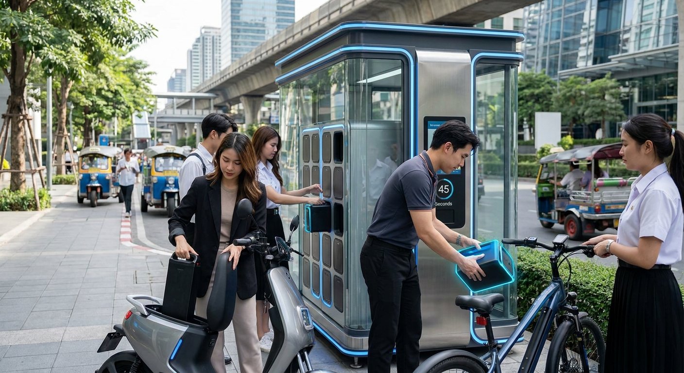 แนวคิดเรื่องตู้สลับแบตเตอรี่ (Battery Swapping) จึงเกิดขึ้นเพื่อตอบโจทย์ปัญหานี้ โดยเฉพาะสำหรับยานพาหนะขนาดเล็กอย่างจักรยานไฟฟ้า (E-Bike) และสกู๊ตเตอร์ไฟฟ้า (Electric Scooter) ซึ่งมีศักยภาพในการเปลี่ยนวิถีการเดินทางในเมืองให้คล่องตัวยิ่งขึ้น อย่างไรก็ตาม การจะทำให้แนวคิดนี้เกิดขึ้นจริงได้ภายในปี 2026 นั้นจำเป็นต้องอาศัยการลงทุนโครงสร้างพื้นฐานขนาดใหญ่และการสร้างมาตรฐานแบตเตอรี่ที่ใช้ร่วมกันได้ ซึ่งยังคงเป็นความท้าทายสำคัญในปัจจุบัน