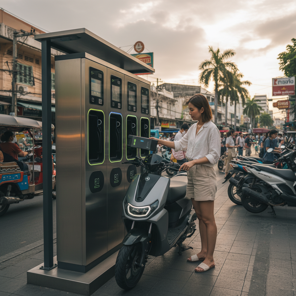 - สถานีบริการขนาดเล็กในเมือง: การติดตั้งสถานีสลับแบตเตอรี่ขนาดเล็กคล้ายตู้ล็อกเกอร์ตามร้านสะดวกซื้อ คอนโดมิเนียม หรือสถานีรถไฟฟ้า เป็นรูปแบบที่ตอบโจทย์วิถีชีวิตคนเมืองในกรุงเทพฯ และหัวเมืองใหญ่