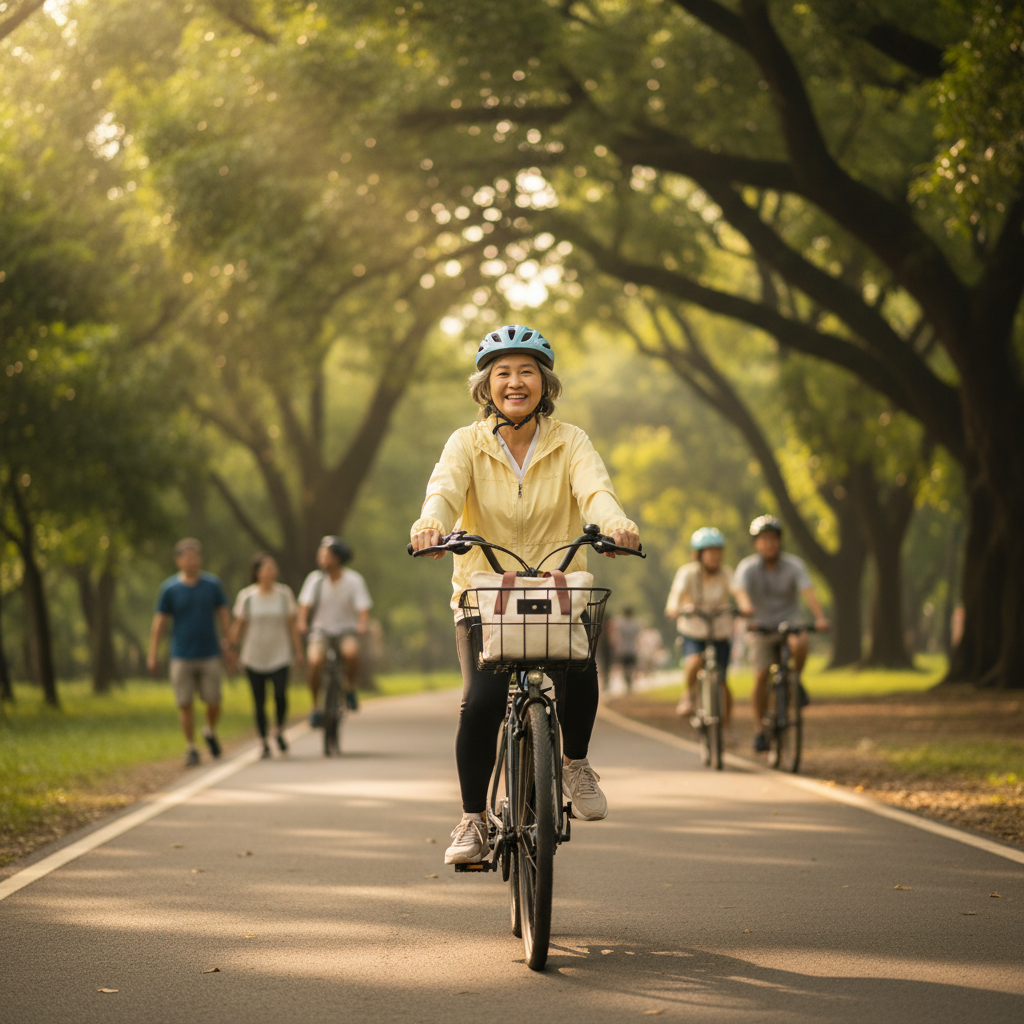 ในด้านสุขภาพกาย การปั่นจักรยานไฟฟ้าอย่างสม่ำเสมอช่วยกระตุ้นการทำงานของหัวใจและระบบไหลเวียนโลหิต เสริมสร้างความแข็งแรงของกล้ามเนื้อขาและแกนกลางลำตัว อีกทั้งยังช่วยฝึกการทรงตัวและรักษาสมดุลของร่างกาย ซึ่งเป็นทักษะที่สำคัญอย่างยิ่งในการป้องกันการหกล้มในผู้สูงวัย นอกจากนี้ ในด้านสุขภาพจิต การได้ออกไปนอกบ้าน สัมผัสกับธรรมชาติและแสงแดดอ่อนๆ ช่วยลดความเครียด สร้างความรู้สึกผ่อนคลาย และป้องกันภาวะซึมเศร้าที่อาจเกิดจากการเก็บตัวอยู่แต่ในบ้านได้เป็นอย่างดี