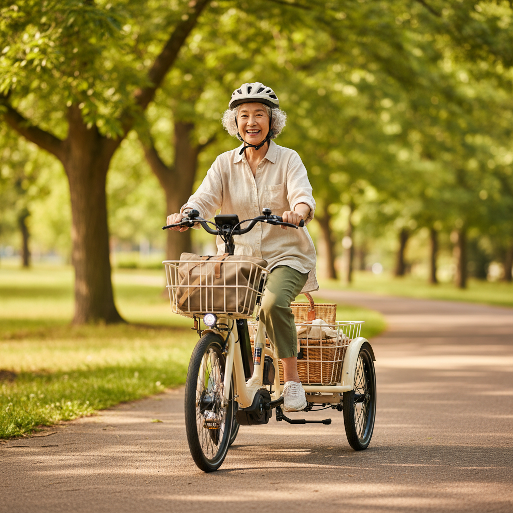 สำหรับผู้สูงอายุที่มีความกังวลเรื่องการทรงตัว หรือต้องการความมั่นคงสูงสุด จักรยานไฟฟ้าผู้สูงอายุ แบบ 3 ล้อ หรือ e-bike 3 ล้อ เป็นตัวเลือกที่เหมาะสมอย่างยิ่ง ด้วยโครงสร้างที่มี 3 ล้อ ช่วยให้ตัวรถมีความเสถียรสูง ลดโอกาสการล้มได้อย่างมาก ไม่ว่าจะขณะขับขี่ด้วยความเร็วต่ำ การเลี้ยว หรือขณะหยุดรถ ทำให้ผู้ขับขี่รู้สึกมั่นใจและปลอดภัยมากกว่าจักรยานไฟฟ้าแบบ 2 ล้อทั่วไป