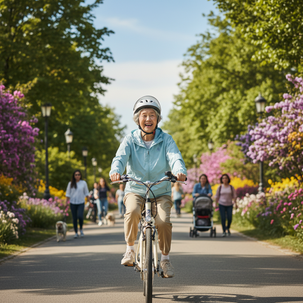 อีกหนึ่งประโยชน์ที่ไม่อาจมองข้ามคือ การส่งเสริมสุขภาพ โหมดช่วยปั่น (Pedal-Assist) เปิดโอกาสให้ผู้สูงอายุได้ออกกำลังกายขาและบริหารข้อต่ออย่างนุ่มนวล โดยมีมอเตอร์ไฟฟ้าคอยช่วยผ่อนแรงเมื่อจำเป็น การปั่น E-Bike เป็นประจำจึงช่วยรักษามวลกล้ามเนื้อและความยืดหยุ่นของร่างกายได้เป็นอย่างดี โดยไม่สร้างภาระหนักเหมือนการปั่นจักรยานธรรมดา