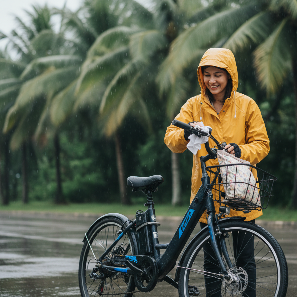 ลุยฝนอย่างมั่นใจ! อยากให้ E-Bike ของคุณทนทาน ปลอดภัย แม้ฤดูฝนมาเยือน? พบ 7 วิธีดูแล E-Bike หน้าฝนแบบมือโปร ทั้งการเตรียมรถ ขับขี่ และบำรุงรักษาหลังใช้. มาดูแล E-Bike ของคุณกัน!