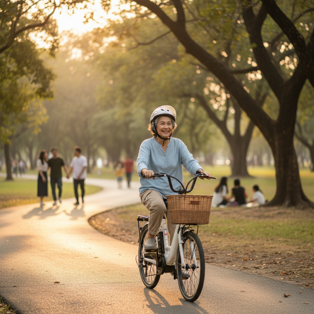 จักรยานไฟฟ้าไม่ได้เป็นเพียงยานพาหนะ แต่ยังเป็นเครื่องมือส่งเสริมสุขภาพที่ทรงประสิทธิภาพสำหรับผู้สูงวัย โดยมอบประโยชน์ที่ครอบคลุมทั้งร่างกายและจิตใจ ช่วยให้ผู้สูงอายุสามารถรักษาสมรรถภาพทางกายและคงความสดใสของจิตใจไว้ได้ยาวนานขึ้น
