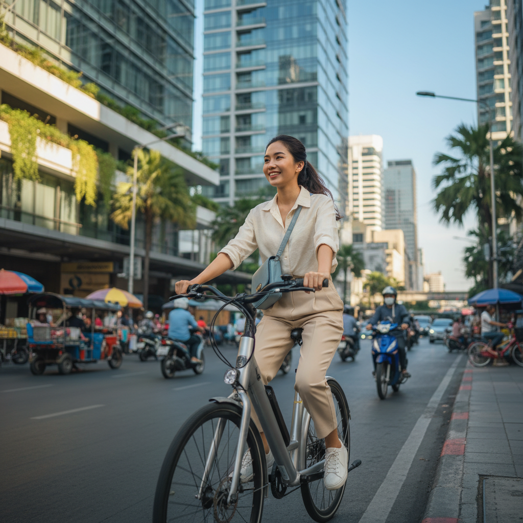 - วัยทำงานและพนักงานออฟฟิศ: สำหรับผู้ที่ต้องการหลีกเลี่ยงการจราจรที่ติดขัดในเมือง หรือใช้เดินทางจากบ้านไปยังสถานีรถไฟฟ้า (First-mile/Last-mile connectivity) การใช้ E-Bike ช่วยประหยัดเวลาและค่าเดินทางได้อย่างมีนัยสำคัญ