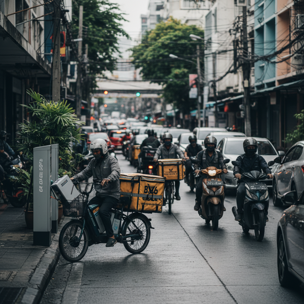- แพลตฟอร์มส่งเสริมการใช้งาน: แพลตฟอร์มเดลิเวอรี่ต่างๆ จะมีบทบาทสำคัญในการส่งเสริมให้ไรเดอร์เปลี่ยนมาใช้ E-Bike ผ่านนโยบายต่างๆ เช่น การให้โบนัสพิเศษ, ส่วนลดค่าชาร์จ หรือโปรแกรมเช่าซื้อ