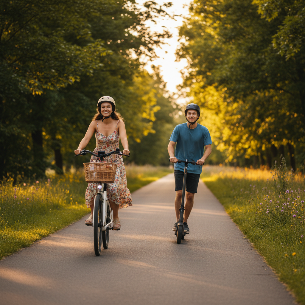 - E-Bike (จักรยานไฟฟ้า): เหมาะสำหรับการเดินทางระยะไกลกว่า มีความสะดวกสบายสูง ปลอดภัยบนสภาพถนนที่หลากหลาย และสามารถใช้งานได้อเนกประสงค์ ทั้งการเดินทาง ออกกำลังกาย และบรรทุกสัมภาระเล็กน้อย