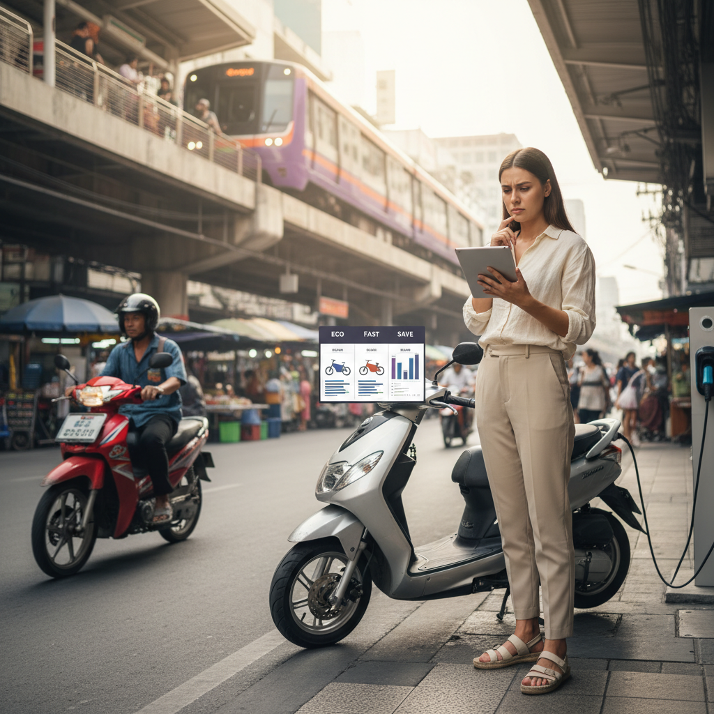 การตัดสินใจเลือกระหว่างจักรยานไฟฟ้า (E-Bike) มอเตอร์ไซค์ที่ใช้น้ำมัน และระบบขนส่งมวลชนอย่างรถไฟฟ้า (BTS/MRT) ไม่สามารถพิจารณาจากปัจจัยใดปัจจัยหนึ่งเพียงอย่างเดียวได้ แต่ต้องมองในภาพรวมที่ครอบคลุมทั้งด้านการเงิน ความสะดวกสบาย และความปลอดภัย นี่คือประเด็นสำคัญที่ควรพิจารณา: