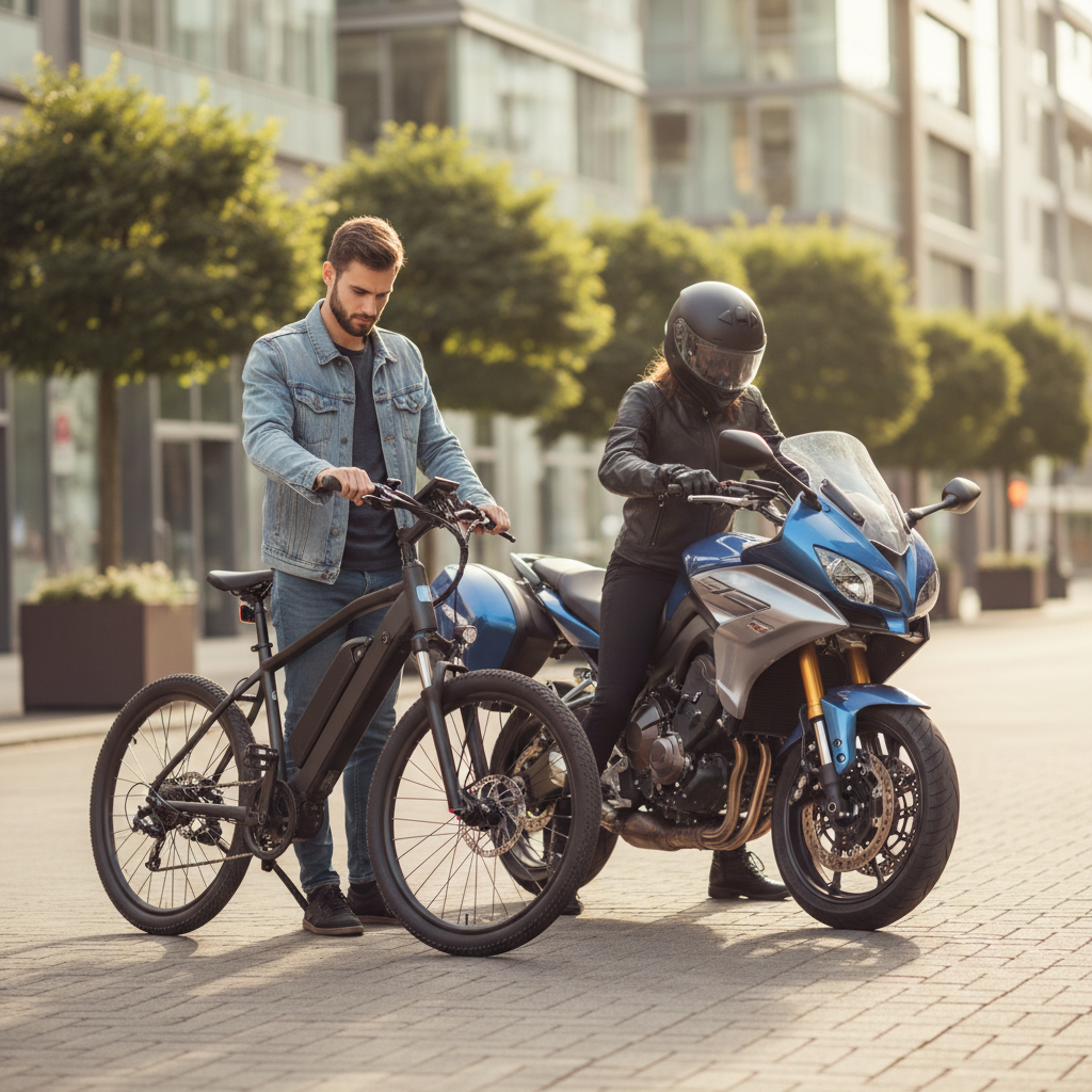 การเลือกระหว่างจักรยานไฟฟ้าและมอเตอร์ไซค์ขึ้นอยู่กับความต้องการในการใช้งานเป็นหลัก มอเตอร์ไซค์ถูกออกแบบมาเพื่อการเดินทางระยะไกลกว่า สามารถทำความเร็วได้สูงกว่า (มักสูงถึง 80 กม./ชม.) และมีความสามารถในการบรรทุกน้ำหนักได้มากกว่า ทำให้เหมาะสำหรับผู้ที่ต้องเดินทางข้ามเขตหรือขนส่งของเป็นประจำ
