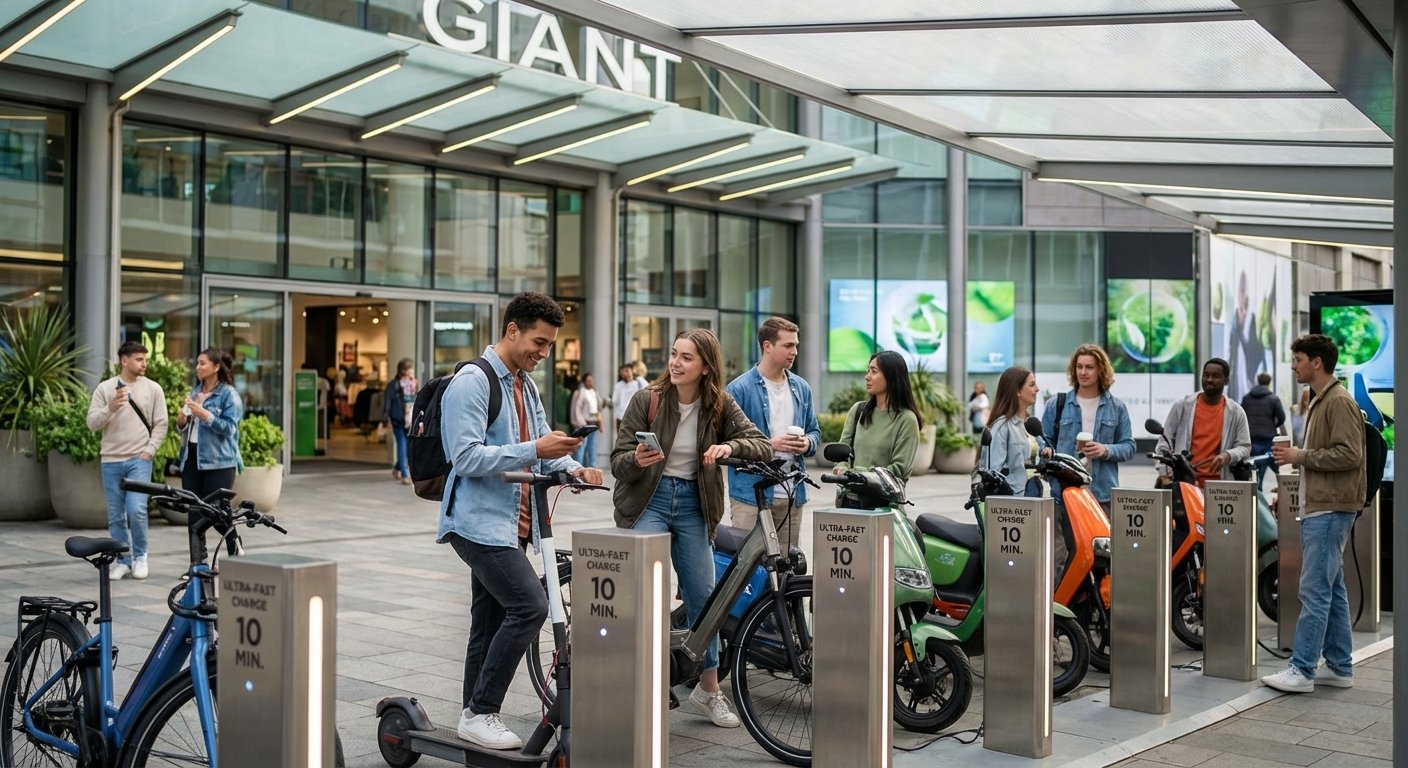 “ทำไมต้องรออนาคต? ที่ GIANT Shopping Mall คุณสามารถสัมผัสประสบการณ์การขับขี่ที่เหนือกว่า พร้อมความประหยัดที่เห็นผลได้ทันที ด้วย E-Bike และสกู๊ตเตอร์ไฟฟ้าที่คัดสรรมาอย่างดีที่สุดเพื่อคุณในวันนี้”