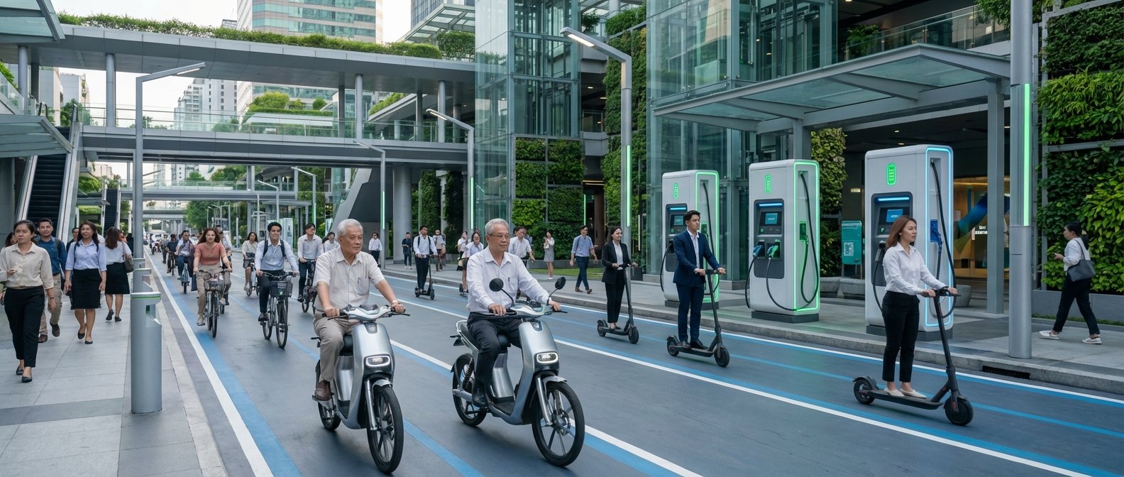 - ยานพาหนะไฟฟ้าส่วนบุคคลมาแรง: ขณะที่โครงสร้างพื้นฐานสำหรับรถยนต์ EV กำลังพัฒนา จักรยานไฟฟ้าและสกู๊ตเตอร์ไฟฟ้ากลายเป็นทางเลือกที่ตอบโจทย์การเดินทางในเมืองได้อย่างคล่องตัวและประหยัดค่าใช้จ่ายในทันที