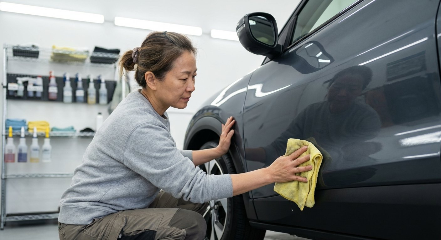 - เช็ดตามซอกมุม: ให้ความสำคัญเป็นพิเศษกับบริเวณขอบประตู, รอบฝาช่องชาร์จ, กระจกมองข้าง, และรอยต่อต่างๆ เพื่อให้แน่ใจว่าไม่มีน้ำขังอยู่