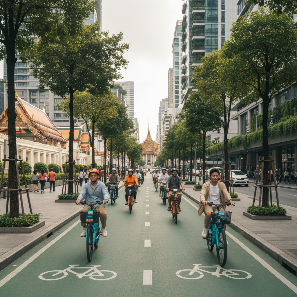 บทความนี้จะสำรวจแนวคิดของเลนจักรยานไฟฟ้าใช้ร่วมอย่างละเอียด ตั้งแต่ทิศทางการพัฒนา ผลกระทบเชิงบวกต่อเมืองและชุมชน ไปจนถึงความท้าทายที่ต้องเผชิญ พร้อมทั้งกรณีศึกษาจากเมืองที่ประสบความสำเร็จในการนำแนวคิดนี้ไปปรับใช้ เพื่อวิเคราะห์ถึงศักยภาพและความเป็นไปได้ในการนำมาประยุกต์ใช้กับบริบทของเมืองใหญ่ในประเทศไทย เช่น กรุงเทพมหานครและเมืองหลักอื่นๆ เพื่อสร้างอนาคตของการเดินทางในเมืองที่ยั่งยืนและมีประสิทธิภาพสำหรับทุกคน