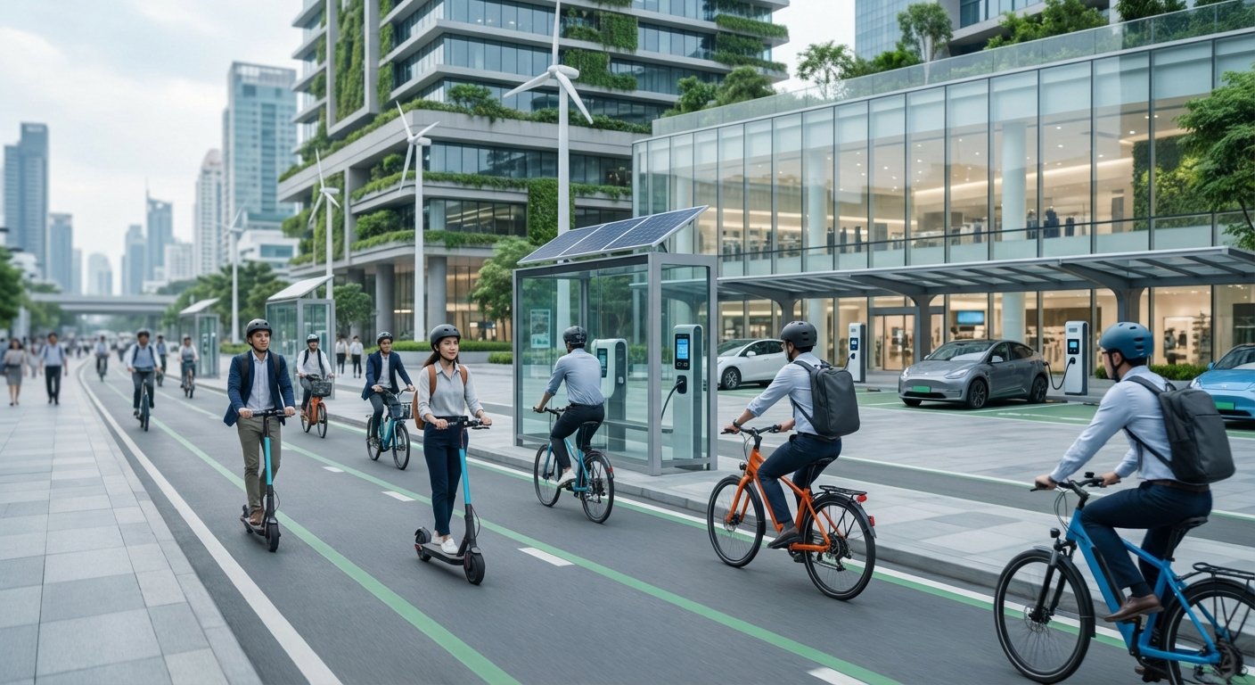 - ยานพาหนะไฟฟ้าส่วนบุคคล เช่น จักรยานไฟฟ้า (E-Bike) และสกู๊ตเตอร์ไฟฟ้า (Electric Scooter) คือหัวใจสำคัญของนโยบาย Smart Mobility เพื่อลดปัญหาการจราจรและมลพิษ