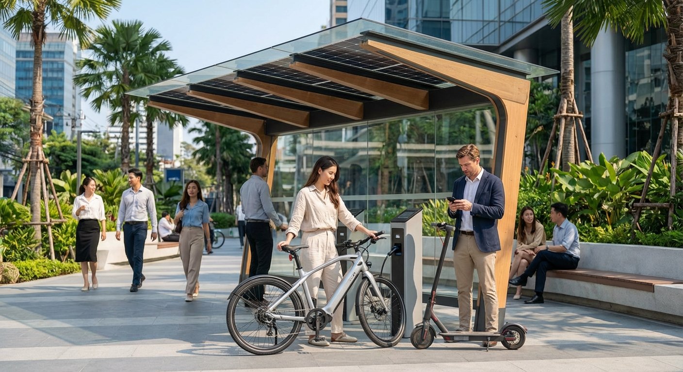 - การขยายสู่ยานยนต์ขนาดเล็ก: แนวคิดสถานีชาร์จพลังงานแสงอาทิตย์กำลังถูกพิจารณาเพื่อขยายการใช้งานไปยังจักรยานไฟฟ้า (E-Bike) และสกู๊ตเตอร์ไฟฟ้า ซึ่งเป็นทางเลือกที่ตอบโจทย์การเดินทางในเมือง