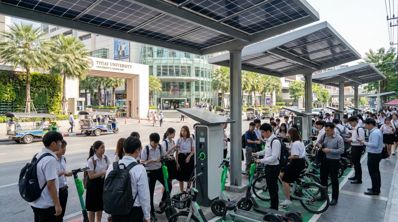 - การมาถึงของจุดชาร์จฟรี: คาดการณ์ว่าภายในปี 2026 จะมีการติดตั้งจุดชาร์จพลังงานแสงอาทิตย์สำหรับจักรยานไฟฟ้า (E-Bike) และสกู๊ตเตอร์ไฟฟ้า (Scooter) ตามห้างสรรพสินค้าและมหาวิทยาลัย ทำให้ผู้ใช้สามารถชาร์จแบตเตอรี่ได้โดยไม่มีค่าใช้จ่าย