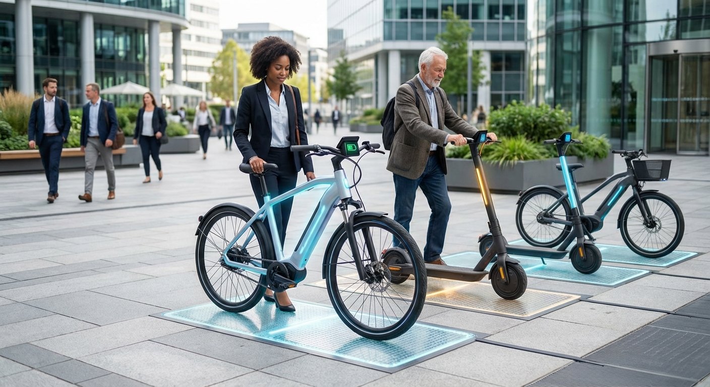 ระบบจักรยานสาธารณะให้เช่า (Bike-Sharing) จะได้รับการยกระดับขึ้นไปอีกขั้น ด้วยสถานีจอดและชาร์จไร้สายอัตโนมัติ ผู้ใช้เพียงแค่นำรถไปจอดคืนที่สถานี ระบบก็จะทำการชาร์จเพื่อให้พร้อมสำหรับผู้ใช้คนต่อไปทันที นอกจากนี้ ในภาคการท่องเที่ยว การมีสกู๊ตเตอร์ไฟฟ้าพร้อมแท่นชาร์จไร้สายตามจุดท่องเที่ยวต่างๆ จะช่วยให้นักท่องเที่ยวสามารถสำรวจเมืองได้อย่างสะดวกสบายและเป็นมิตรต่อสิ่งแวดล้อม